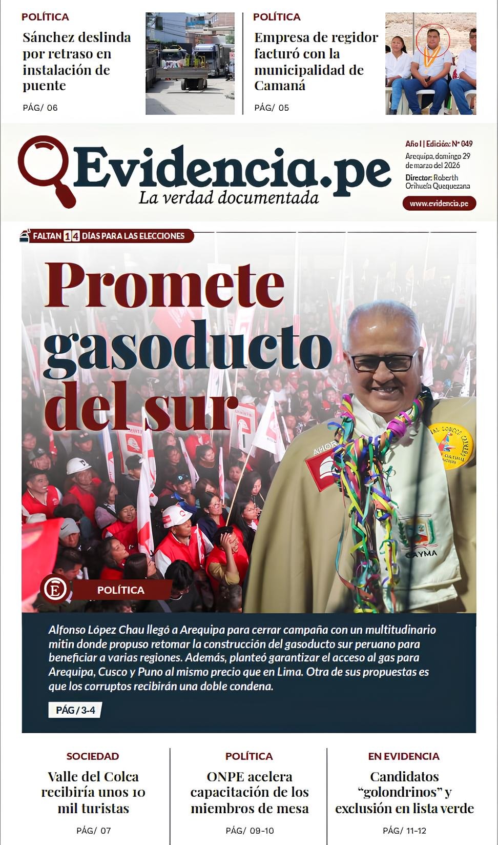El candidato presidencial de Ahora Nación llegó a Arequipa para cerrar campaña con una multitudinaria recepción. Planteó reformas del Estado, seguridad firme contra mafias, impulso...