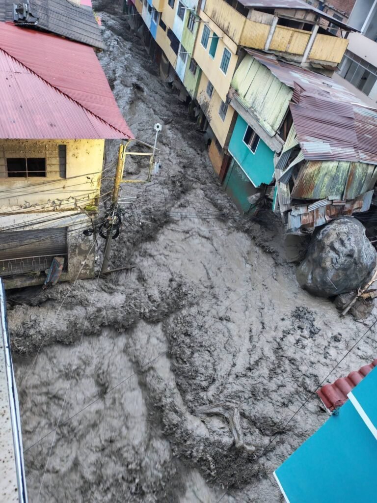 La emergencia se agravó debido a la activación de quebradas cercanas producto de las lluvias persistentes, lo que provocó acumulación de lodo y piedras en diferentes sectores del distrito.