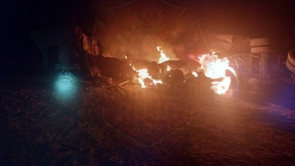 Un tráiler de carga pesada sufrió un despiste y volcadura a la altura del kilómetro 9.5, lo que provocó un incendio que terminó con la vida del conductor.