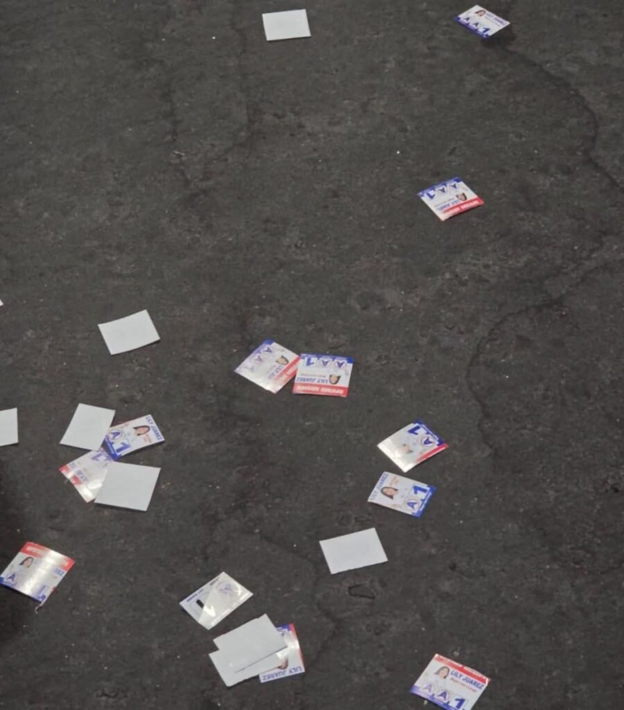 En el distrito de José Luis Bustamante y Rivero, a pocos metros de la I.E. Jorge Basadre Grohmann, se encontraron decenas de papeles pequeños con propaganda política esparcidos en la vía pública durante la jornada de las Elecciones Generales 2026.