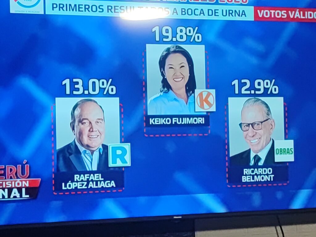 Los primeros resultados a boca de urna en Lima ubican a la candidata presidencial de Fuerza Popular, Keiko Fujimori, en el primer lugar en las encuestas difundidas hasta el momento.Estos datos corresponden a estimaciones preliminares y deberán ser confirmados con los resultados oficiales conforme avance el conteo de votos.