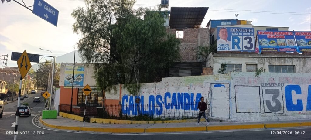 ¡Infringen la ley! Candidatos Carlos Candia (Renovación Popular) y Nilson Flores (Partido del Buen Gobierno) colocan publicidad a menos de 100 metros de un local de votación en Alto Selva Alegre