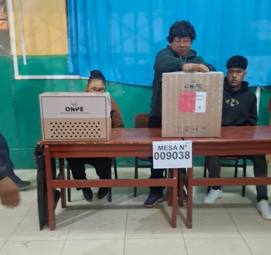 En la provincia de Caylloma, distrito de Maca, se registró la instalación de la primera mesa de sufragio en la I.E. 40390 Mayta Cápac, a las 6:10 horas, correspondiente a la mesa N.° 008560.