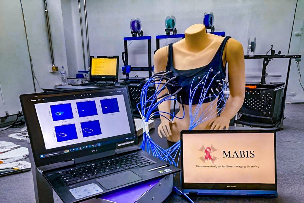 El grupo ha desarrollado dos proyectos de gran impacto. El primero es el sistema radar UWB–MABIS (Microwave Analyzer for Breast Imaging Scanning), un brasier diseñado para identificar tumoraciones mamarias mediante radiofrecuencia. Se trata de una alternativa no invasiva, que complementa los métodos tradicionales y ofrece una opción accesible para el diagnóstico precoz del cáncer de mama, una de las enfermedades con mayor incidencia en el país.