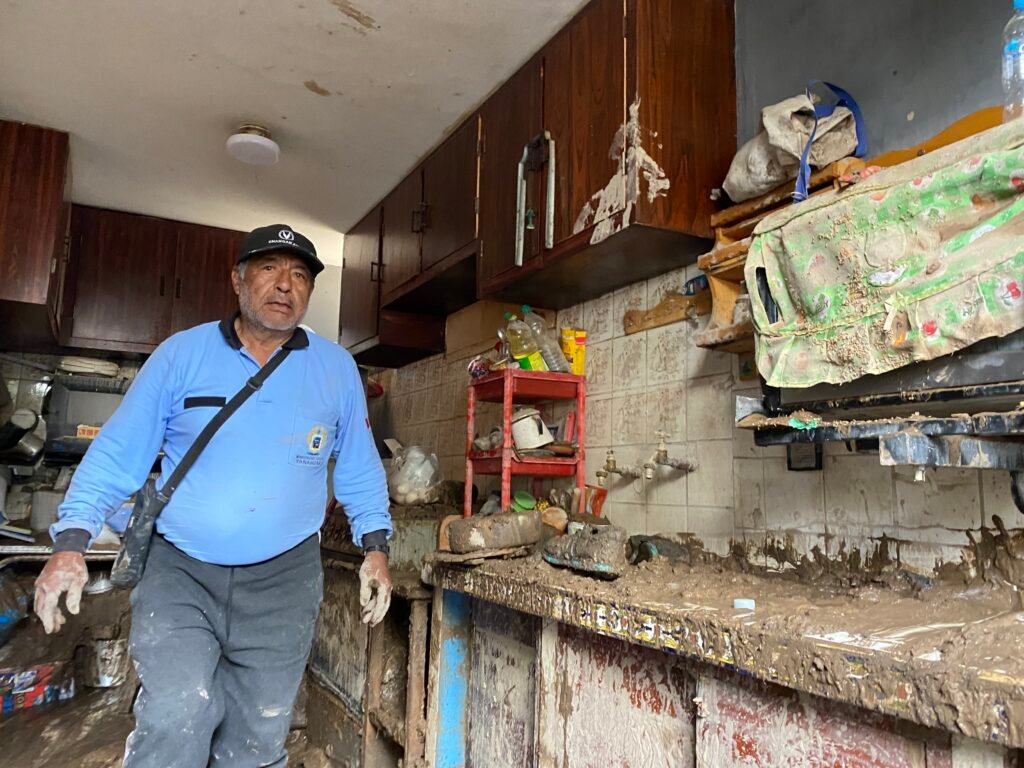 Antonio, paciente oncológico, con el sudor en la frente y más cansancio que esperanza, viste ropa prestada de uno de sus cuatro hijos. «No tengo nada, esta ropa es lo que directamente me ha dado uno de mis hijos». Jainor, su hijo, perdió drones, cámaras, computadoras. «Barro, barro», resumió.