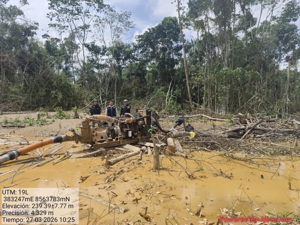 Frente a este panorama, el Quinto Despacho de la Fiscalía Especializada en Materia Ambiental ejecutó un operativo en dos fases, los días 27 y 30 de marzo, en coordinación con la Policía Nacional y el Ejército Peruano. La intervención fue diseñada a partir de inteligencia geoespacial, lo que permitió anticipar los movimientos de las mafias y evadir sus sistemas de alerta temprana, conocidos como “campanas”.