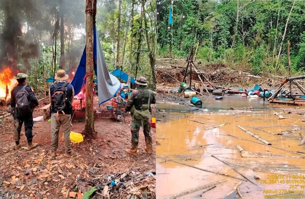 Autoridades intervienen campamento de minería ilegal en zona amazónica.