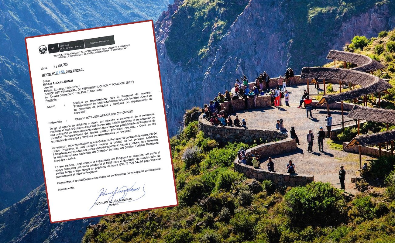 El Ministerio de Economía y Finanzas (MEF) ha iniciado formalmente las gestiones para obtener un importante respaldo económico internacional destinado al sector turismo en el sur del país. Mediante el Oficio N.° 0142-2026-EF/10.01, fechado el 21 de abril de 2026, el ministro Rodolfo Acuña Namihas solicitó al Banco Internacional de Reconstrucción y Fomento (BIRF), integrante del Banco Mundial, un préstamo de hasta US$ 77 millones 206 mil 342.