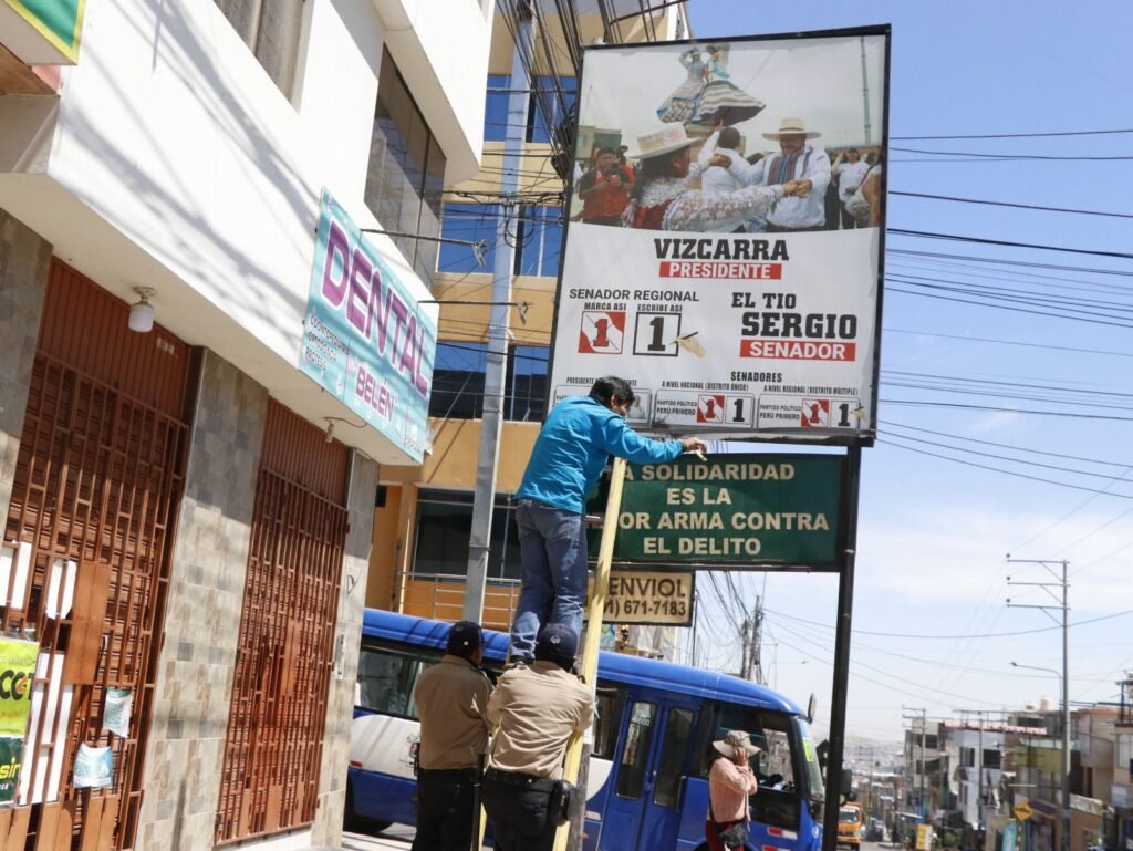 Pese a restricción de publicidad, paneles políticos de Renovación Popular, Perú Primero, Progresemos, entre otros, seguían instalados cerca los locales de votación