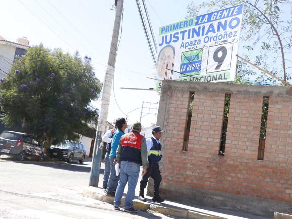 Entre el material retirado durante el operativo se identificó propaganda del partido político Renovación Popular, correspondiente al candidato al Congreso Carlos Candia. Asimismo, se hallaron elementos publicitarios del Partido del Buen Gobierno vinculados al postulante Edgar González, así como del candidato al Senado Justiniano Apaza, del partido Primero la Gente.