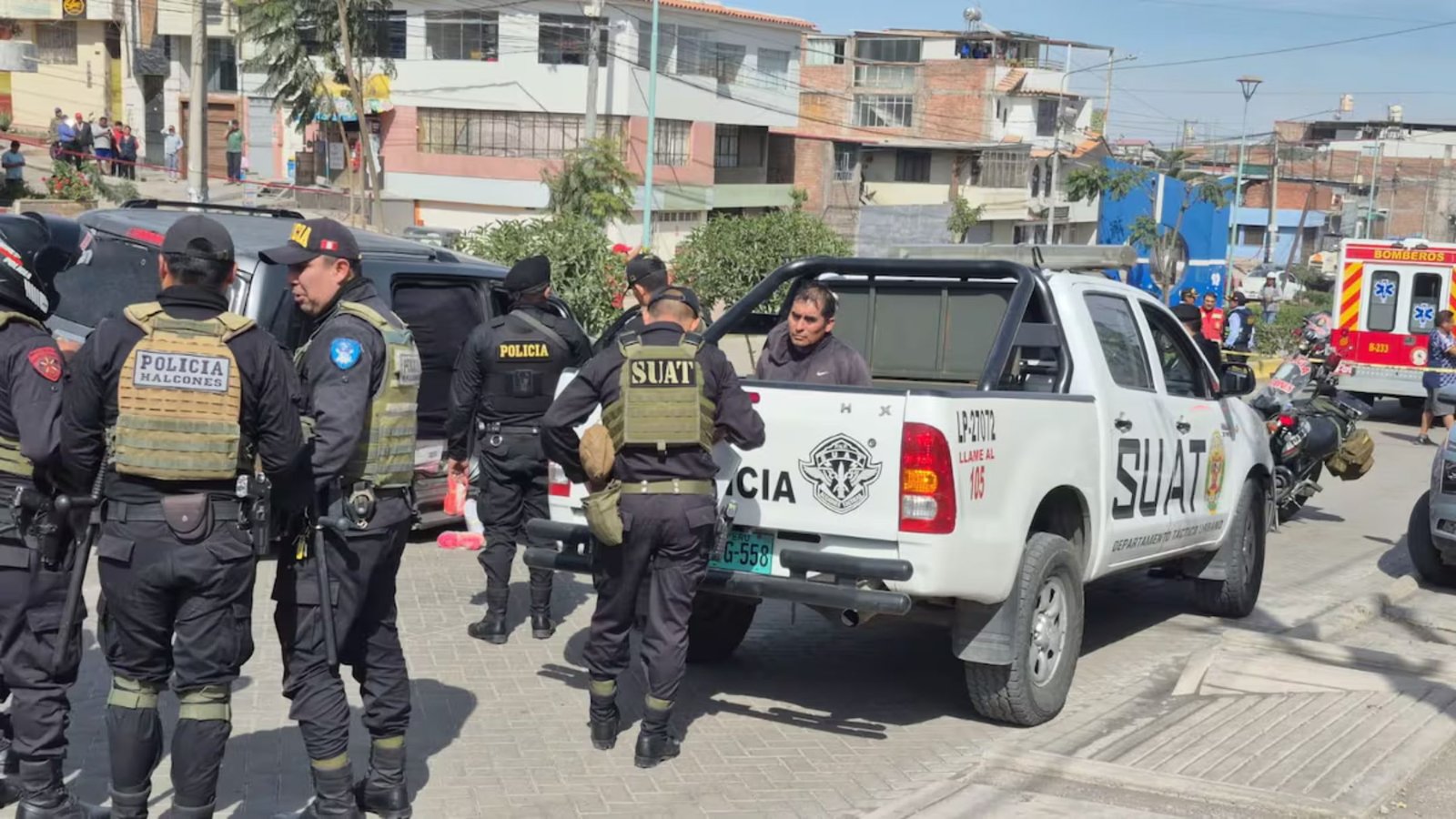 En ese punto, la camioneta impactó contra una combi de placa V1H-293. El choque dejó heridos al conductor Berly Eguiluz y a su esposa Fermina Suca, quienes fueron trasladados al hospital Edmundo Escomel. El vehículo intervenido presentaba daños en parabrisas y llantas tras los disparos.
