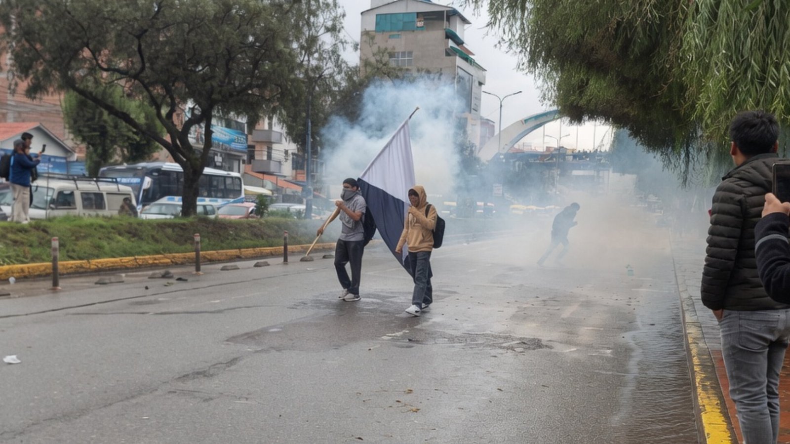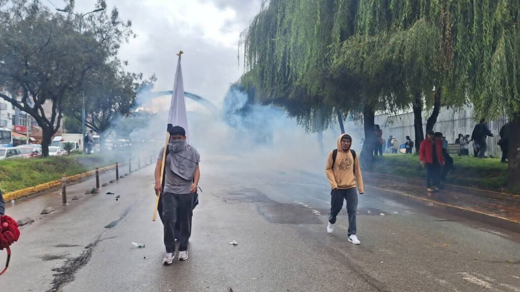 Uso de gases lacrimógenos durante protesta estudiantil en Cusco.