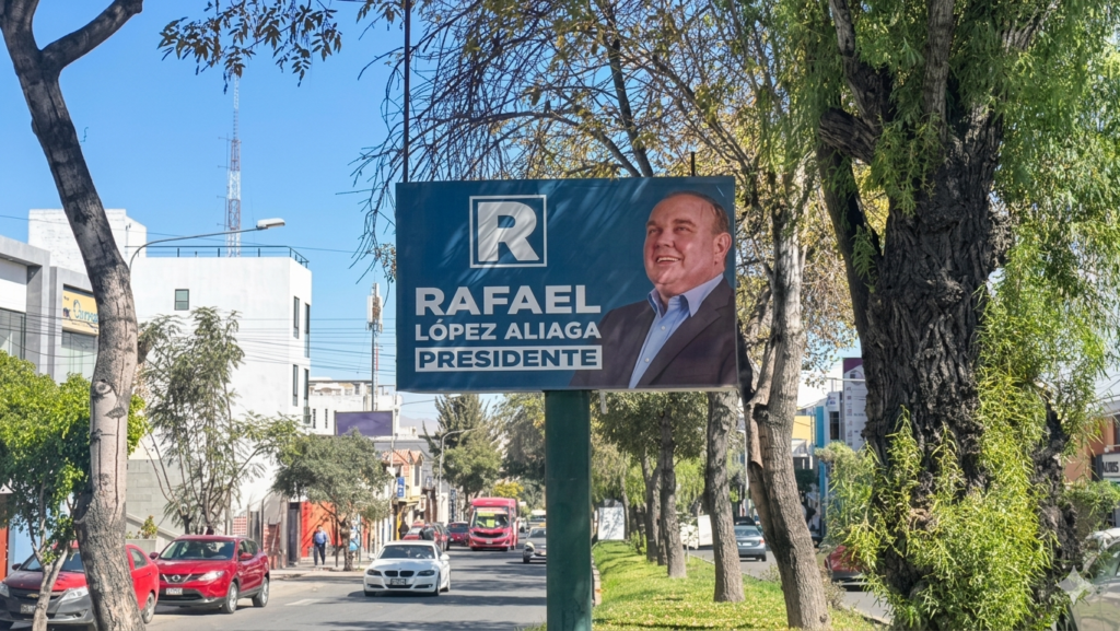 Paneles publicitarios de Renovación Popular abundan por todo el distrito.