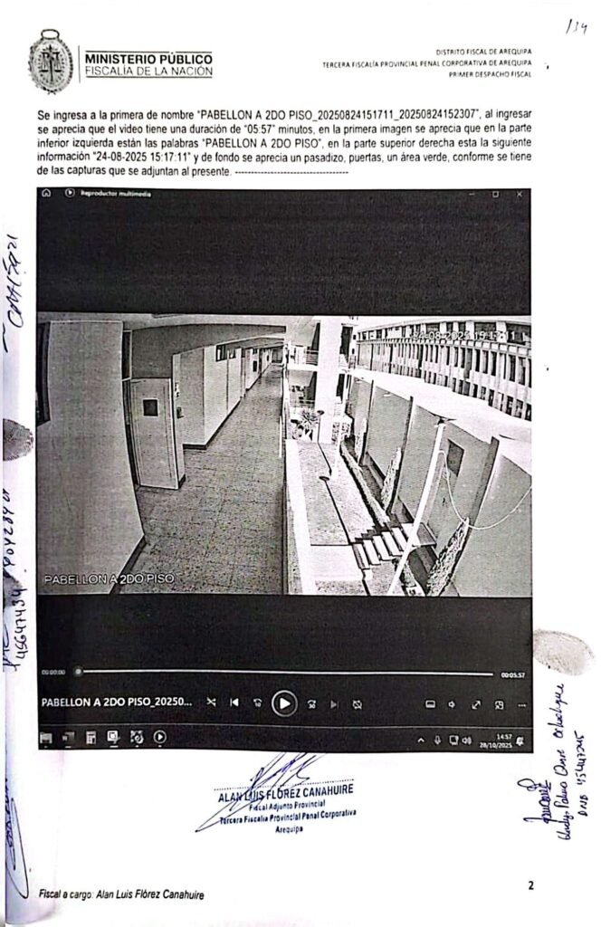 La Fiscalía requirió a la Universidad Católica de Santa María grabaciones de hasta dos horas cámaras para analizar los hechos. Sin embargo, solo se remitió videos de menos de seis minutos, según las actas. El personal de la universidad tampoco asistió a las diligencias a las que se les citó.