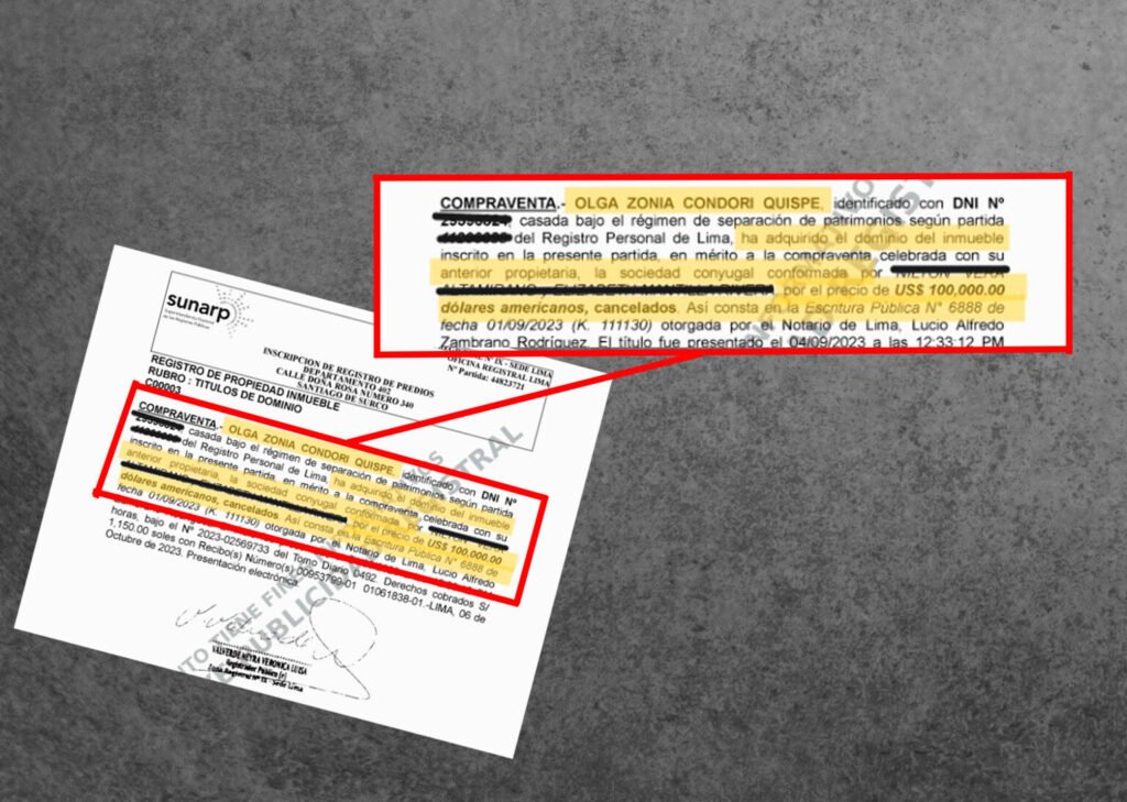 Esta compra, realizada bajo el régimen de separación de patrimonios, plantea interrogantes sobre la capacidad económica de Condori para concretar una inversión de ese nivel en un plazo de apenas dos años desde su ingreso al Congreso.